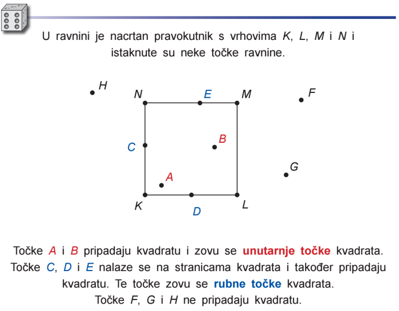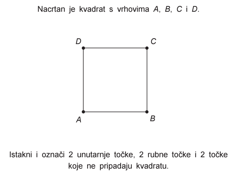 Nacrtaj kvadrat ABCD u bilježnicu (duljine stranica po želji) i označi točke koje su zadane u zadatku.