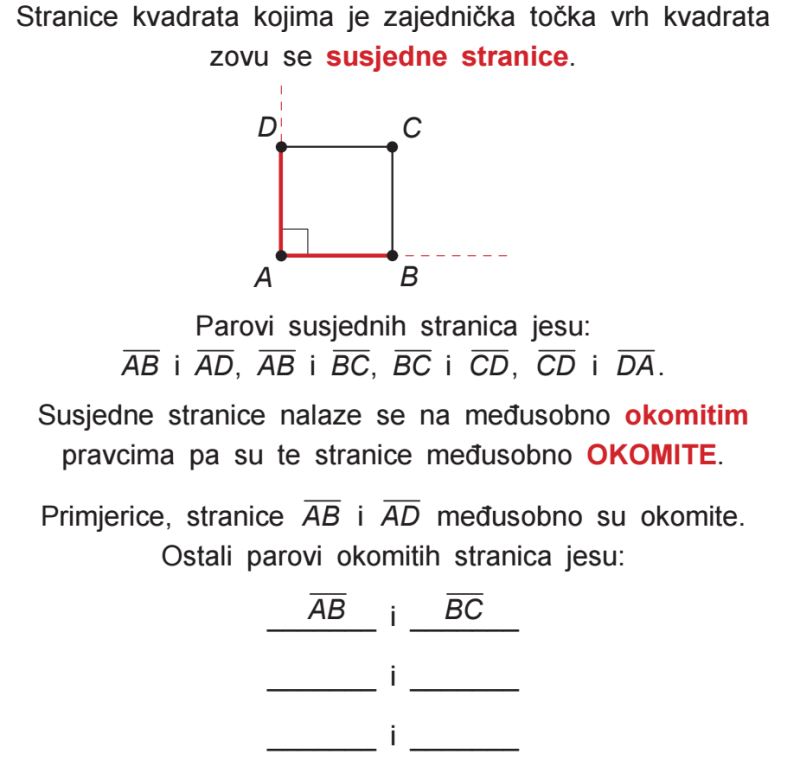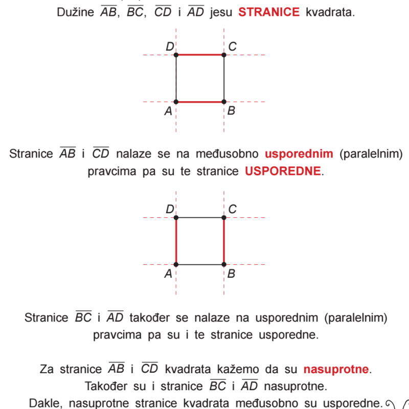 Pogledaj, pročitaj, odgovori, napiši i prisjeti se glavnih pojmova koji su vezani za kvadrat.