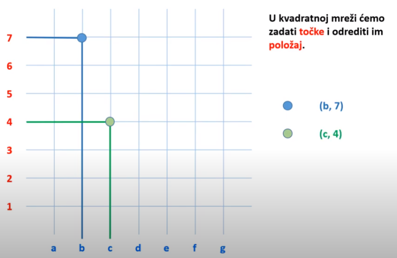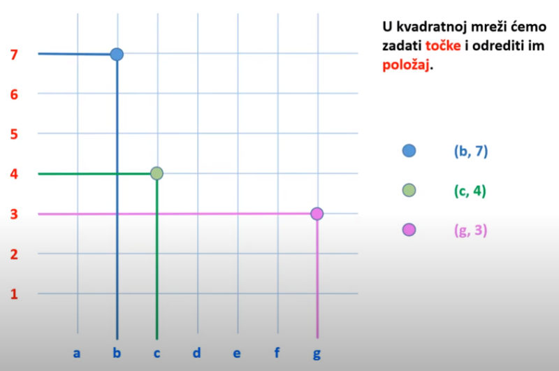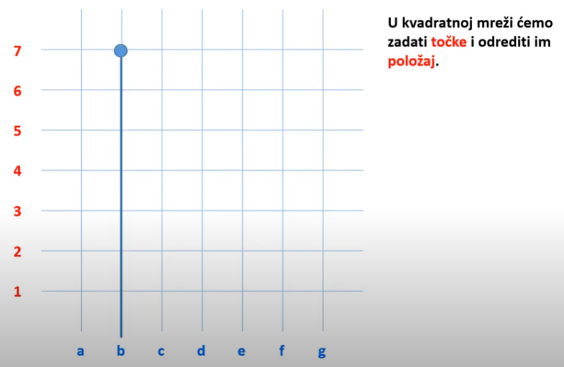 Zaključujemo da se točka u našoj kvadratnoj/pravokutnoj mreži nalazi na pravcu b i pravcu 7.