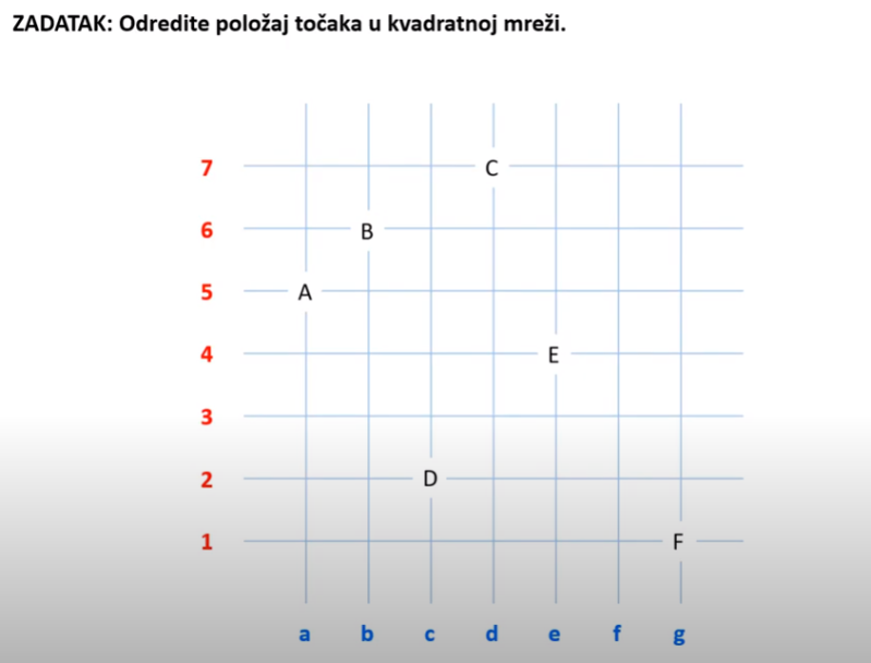 U kvadratnoj/pravokutnoj mreži ćemo zadati neke točke i odrediti im položaj.