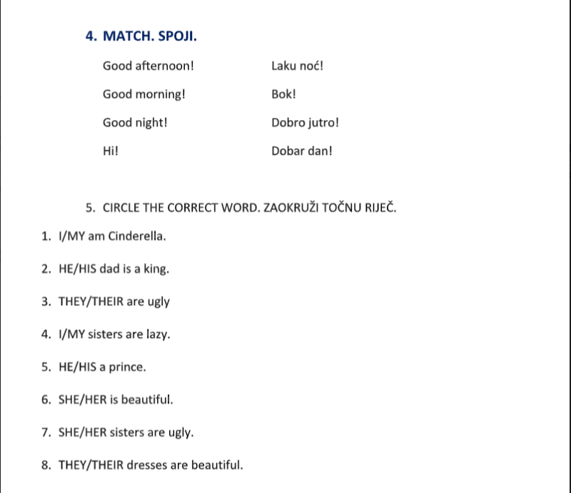 Prvo treba sve još jednom pročitati i ponoviti nove riječi, ako im ne ide dobro, neka još lekciju barem jednom poslušaju na cdu. Ako je netko izgubio cd, zvučne zapise možete skinuti na Školskom portalu.